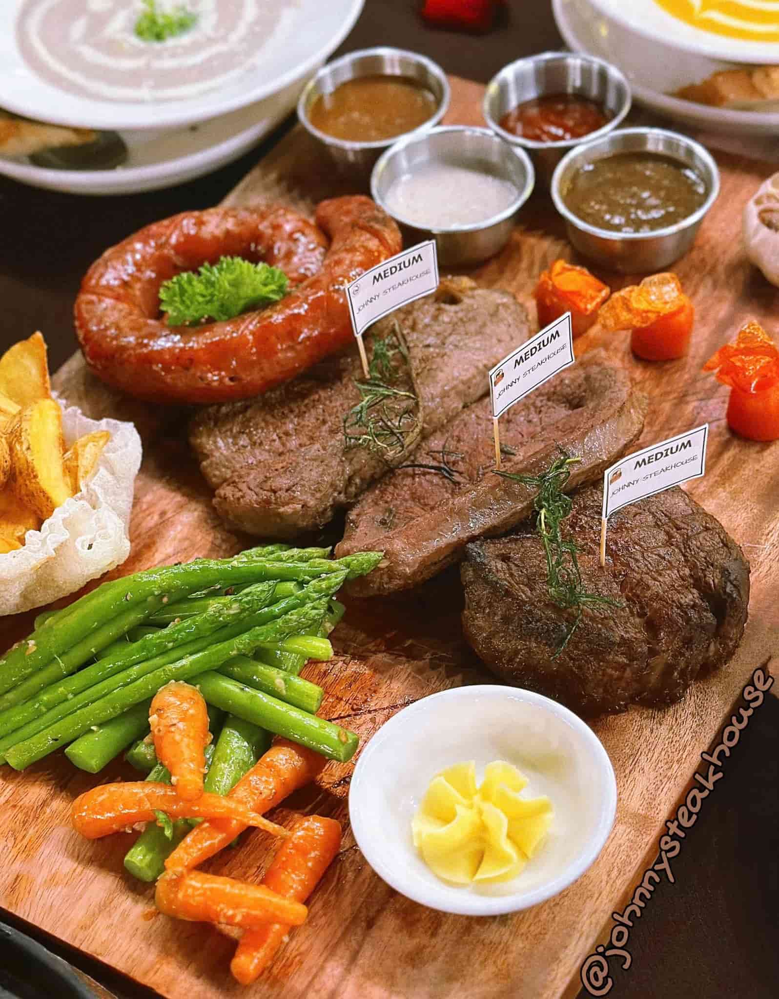 Các món ăn tại Johnny Steak House được đánh giá cao nhờ chất lượng nguyên liệu ổn định, cách chế biến giữ trọn độ mềm của thịt bò và sự cân bằng trong gia vị. Bên cạnh steak, thực đơn còn có các món Âu như mì, cơm rang và các món ăn kèm được trình bày chỉn chu.